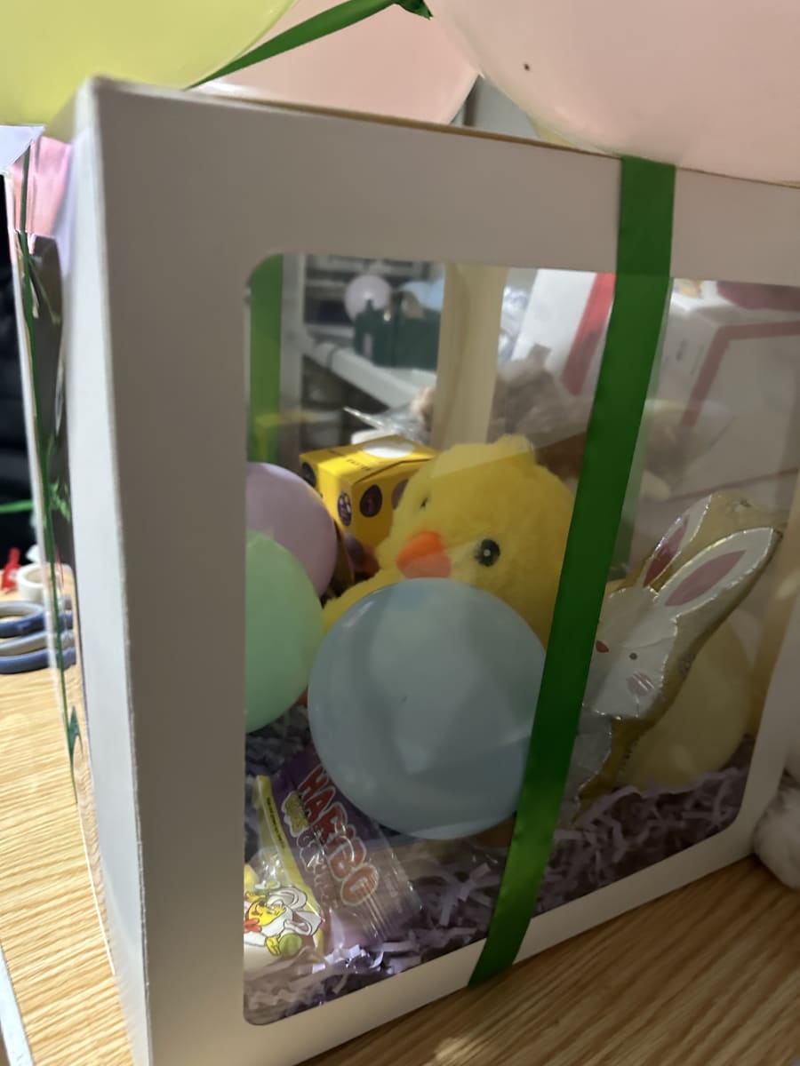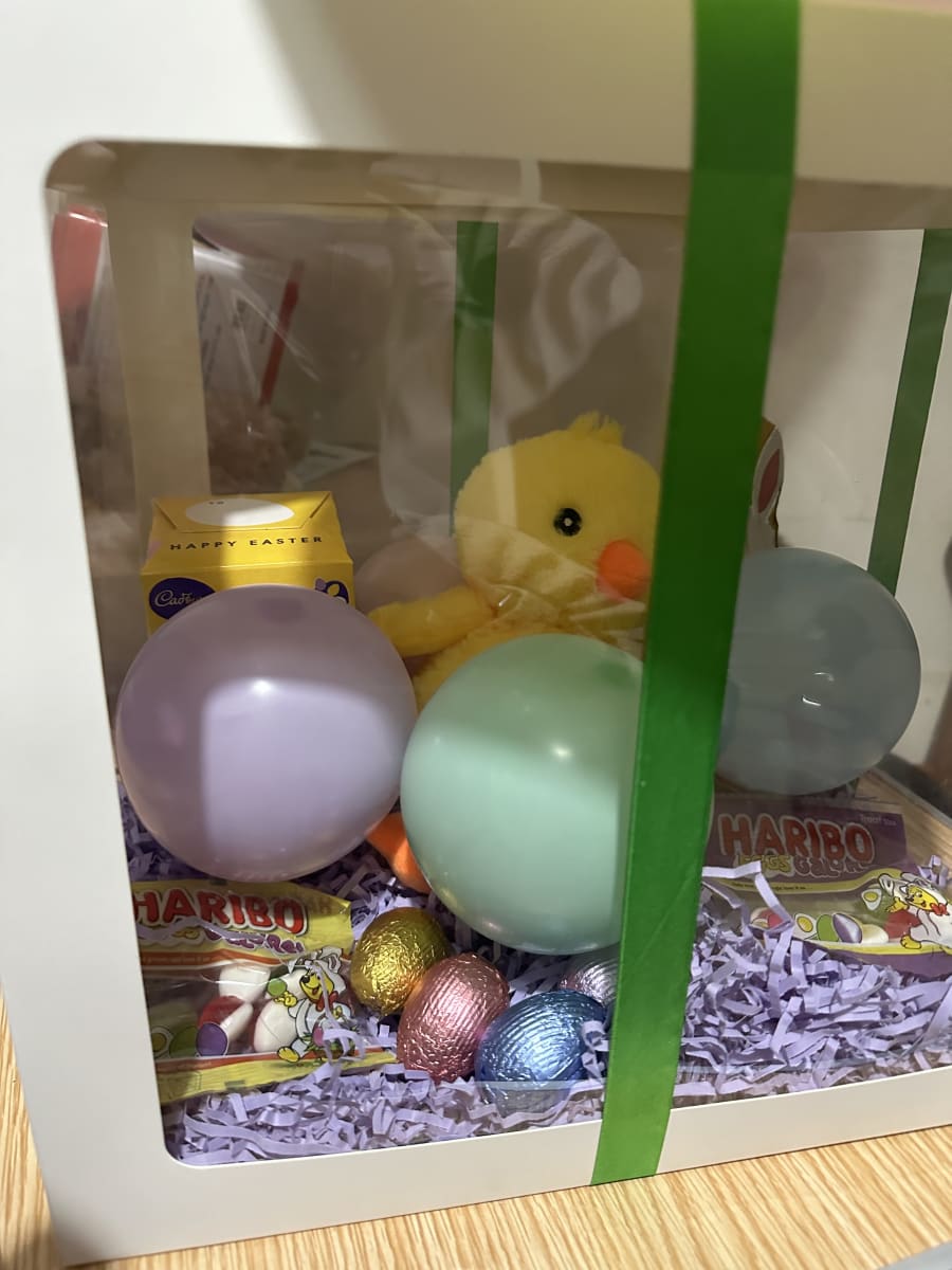 This charming box is filled with a variety of delicious sweets that are sure to satisfy everyone's sweet tooth. From chocolate eggs to gummy candies, this box has something for everyone to enjoy. 🍬